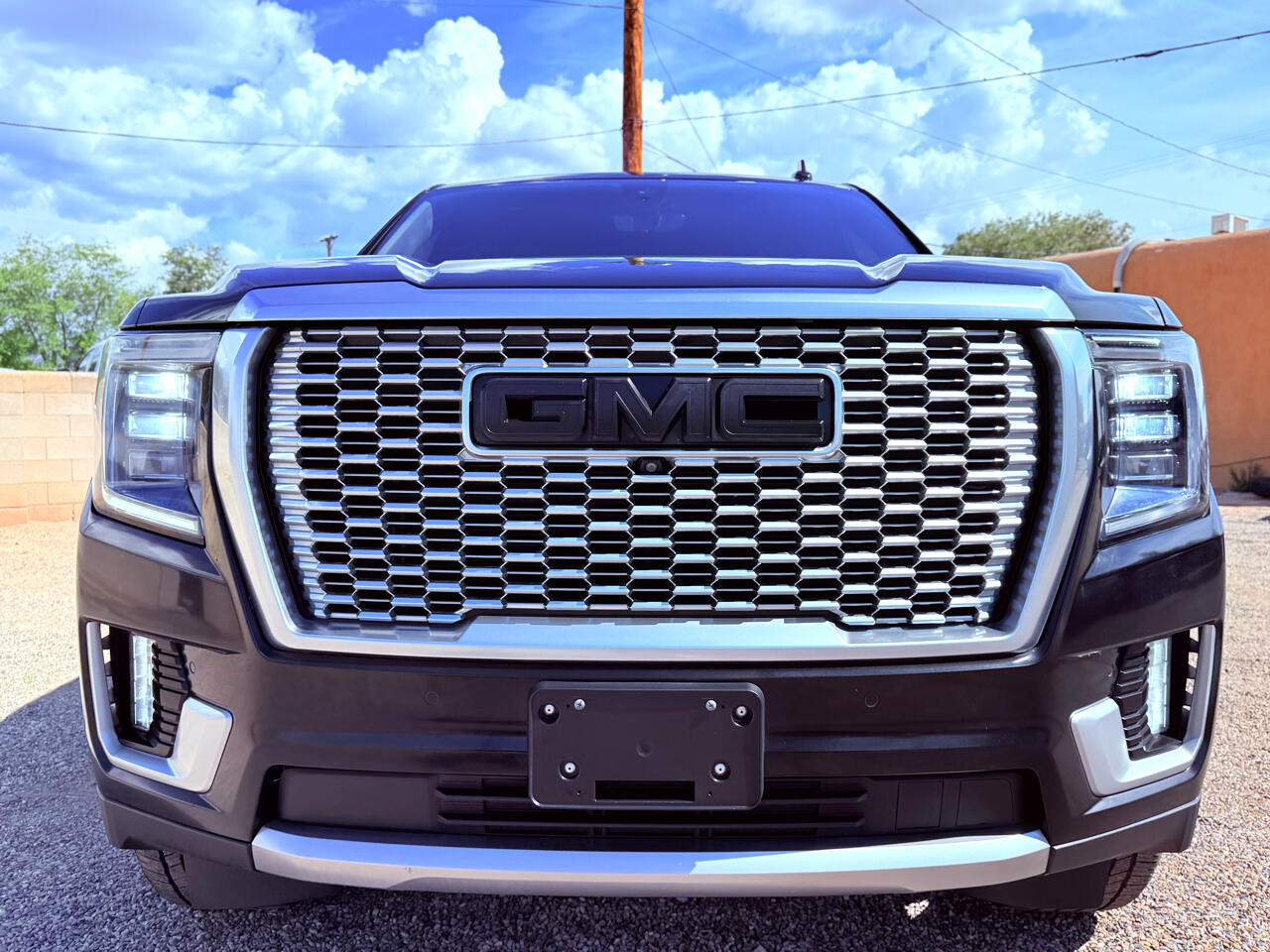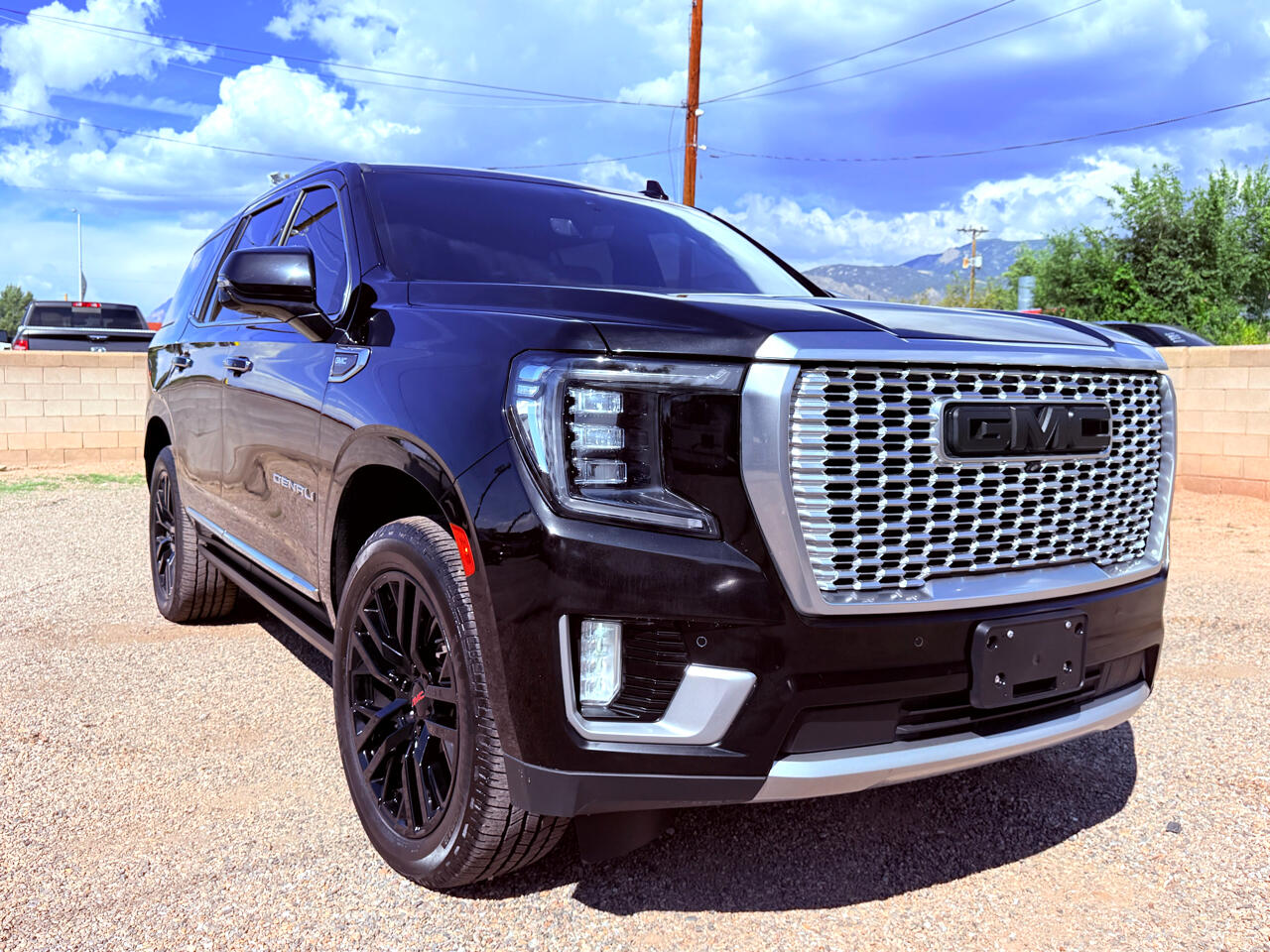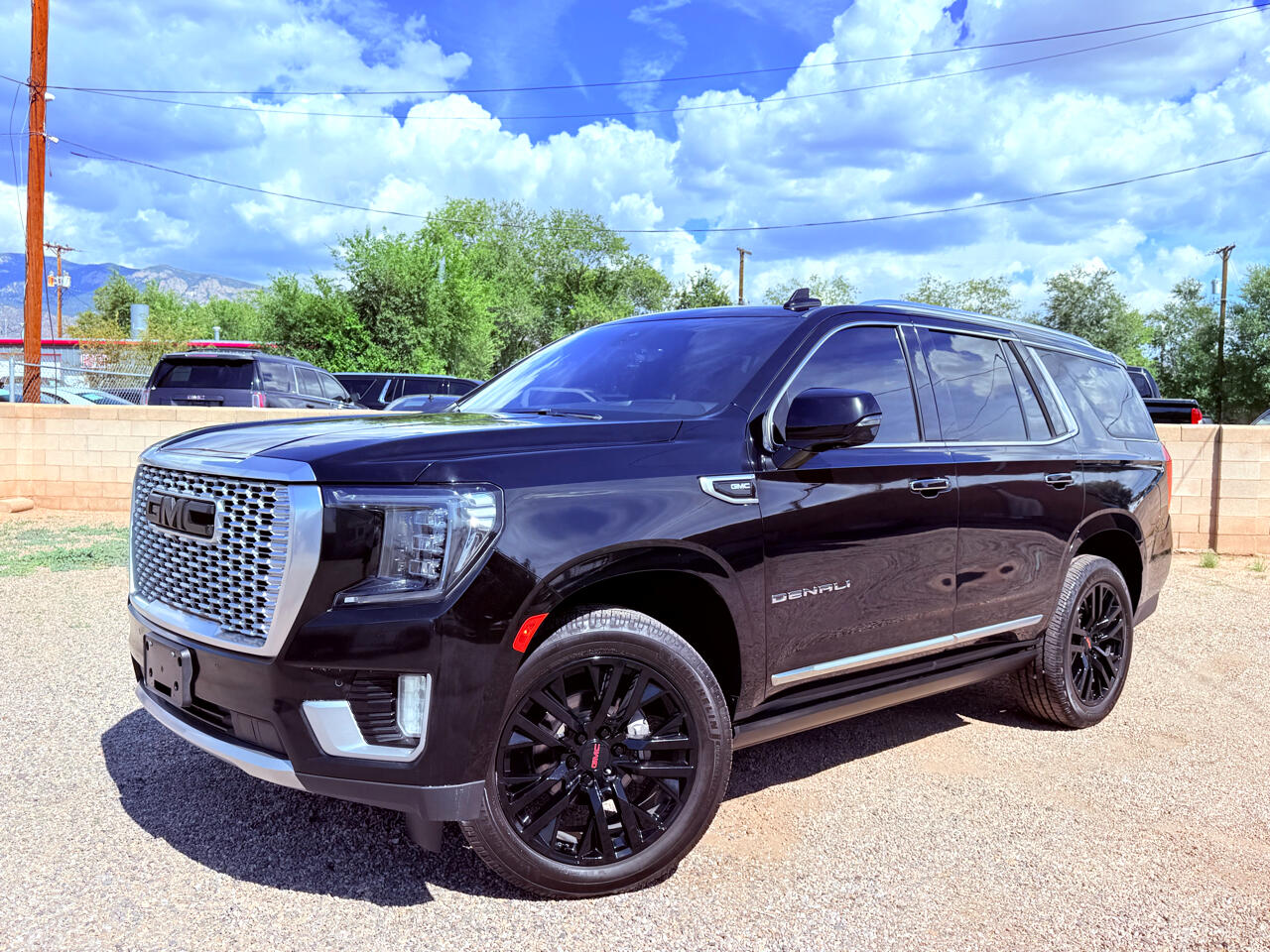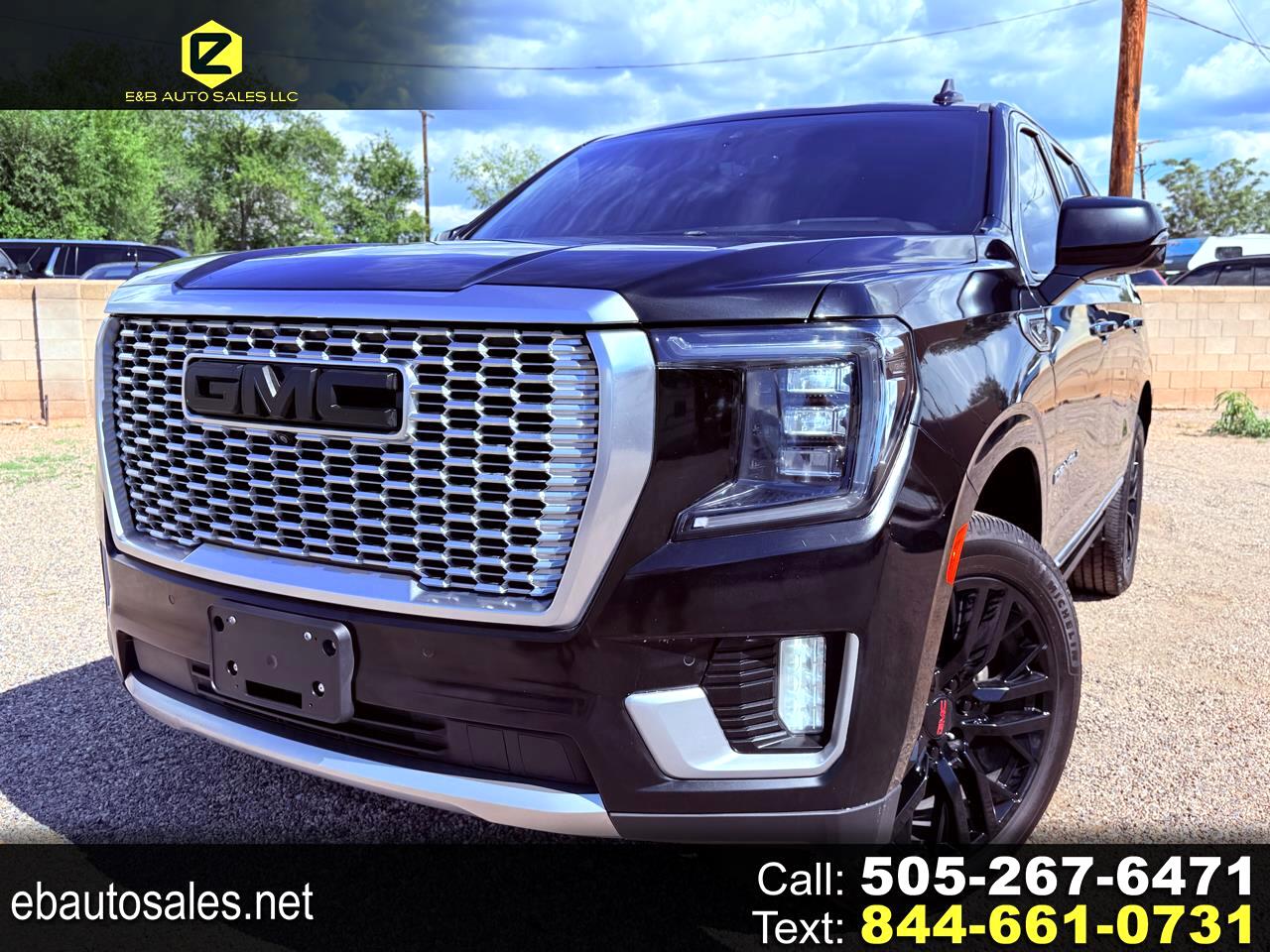 Used 2021 GMC Yukon Denali AWD - Fully Loaded, Super Clean in Albuquerque, NM This super clean 2021 GMC Yukon Denali AWD delivers full-size luxury, power, and versatility in one of the most refined SUVs on the road. Fully loaded with premium features, it comes equipped with a 6.2L V8 engine, advanced all-wheel drive, and a smooth-shifting 10-speed transmission for confident performance in any condition. Inside, the Denali-exclusive interior offers hand-stitched leather, real wood accents, and a large 10.2'' touchscreen with built-in navigation and a heads-up display. You'll also enjoy premium comfort features like a panoramic sunroof, heated and ventilated seats, and a quiet, spacious cabin with seating for up to nine. Magnetic Ride Control and the available Air Ride Adaptive Suspension ensure a smooth, composed ride, while advanced safety tech-including HD Surround Vision and rear pedestrian alert-adds peace of mind. Visit E&B Auto Sales at 11100 Central Ave SE, Albuquerque, NM 87123 to take this fully optioned Yukon Denali for a test drive. Call 505-267-6471 today. Flexible financing and trade-ins welcome - all credit types accepted!