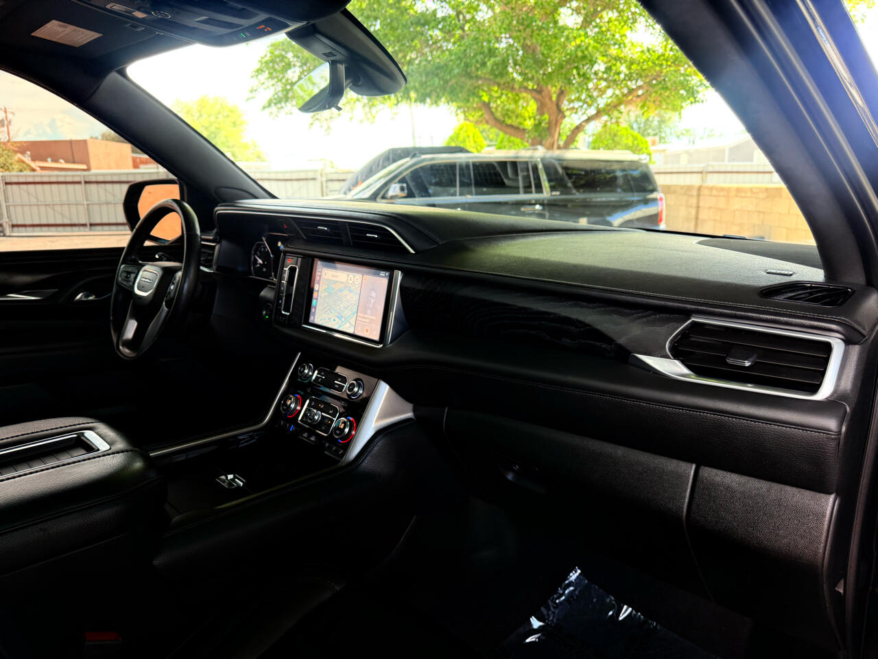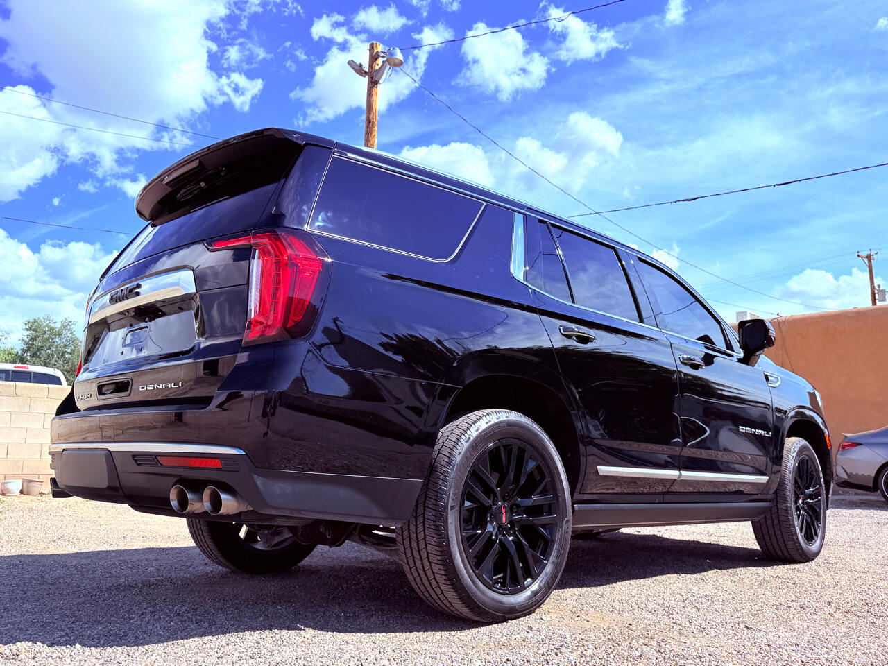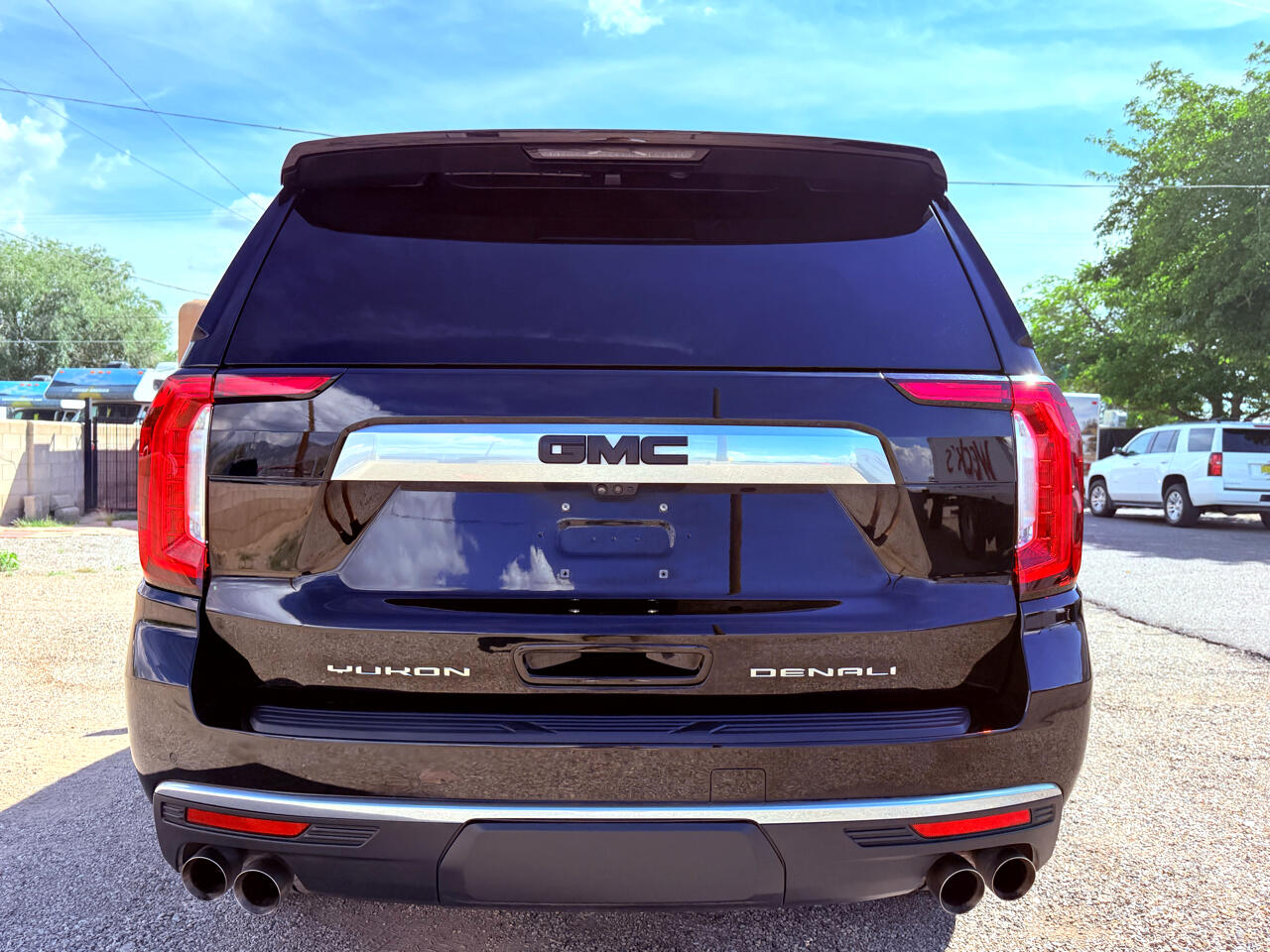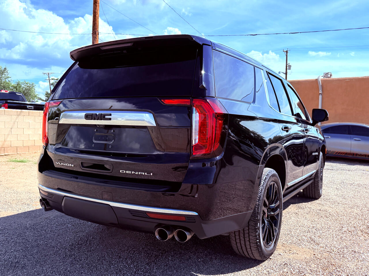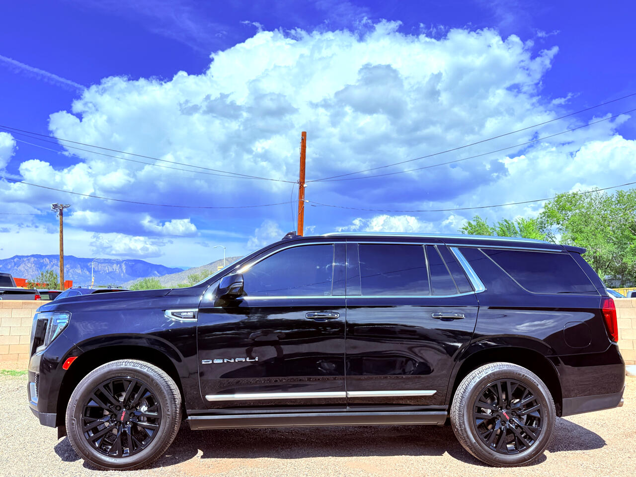 Used 2021 GMC Yukon Denali AWD - Fully Loaded, Super Clean in Albuquerque, NM This super clean 2021 GMC Yukon Denali AWD delivers full-size luxury, power, and versatility in one of the most refined SUVs on the road. Fully loaded with premium features, it comes equipped with a 6.2L V8 engine, advanced all-wheel drive, and a smooth-shifting 10-speed transmission for confident performance in any condition. Inside, the Denali-exclusive interior offers hand-stitched leather, real wood accents, and a large 10.2'' touchscreen with built-in navigation and a heads-up display. You'll also enjoy premium comfort features like a panoramic sunroof, heated and ventilated seats, and a quiet, spacious cabin with seating for up to nine. Magnetic Ride Control and the available Air Ride Adaptive Suspension ensure a smooth, composed ride, while advanced safety tech-including HD Surround Vision and rear pedestrian alert-adds peace of mind. Visit E&B Auto Sales at 11100 Central Ave SE, Albuquerque, NM 87123 to take this fully optioned Yukon Denali for a test drive. Call 505-267-6471 today. Flexible financing and trade-ins welcome - all credit types accepted!