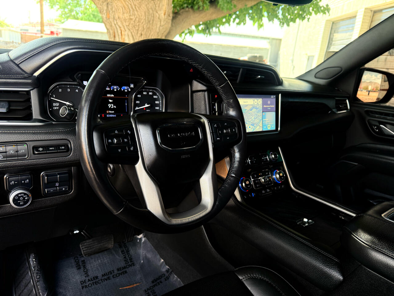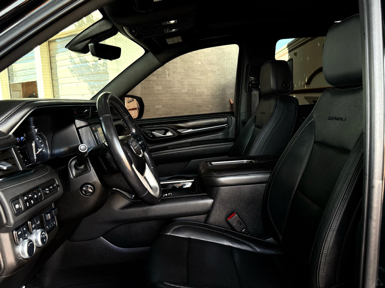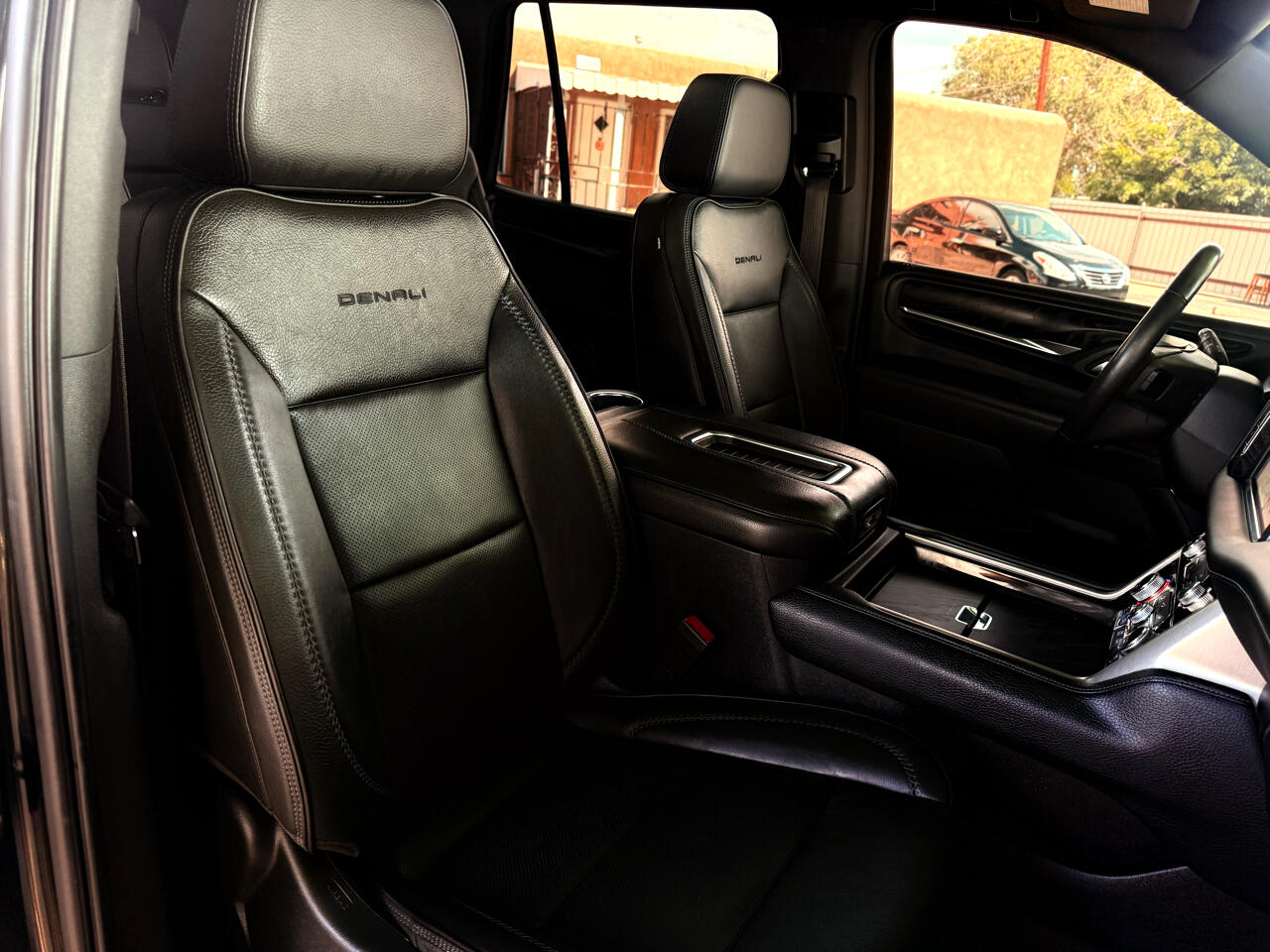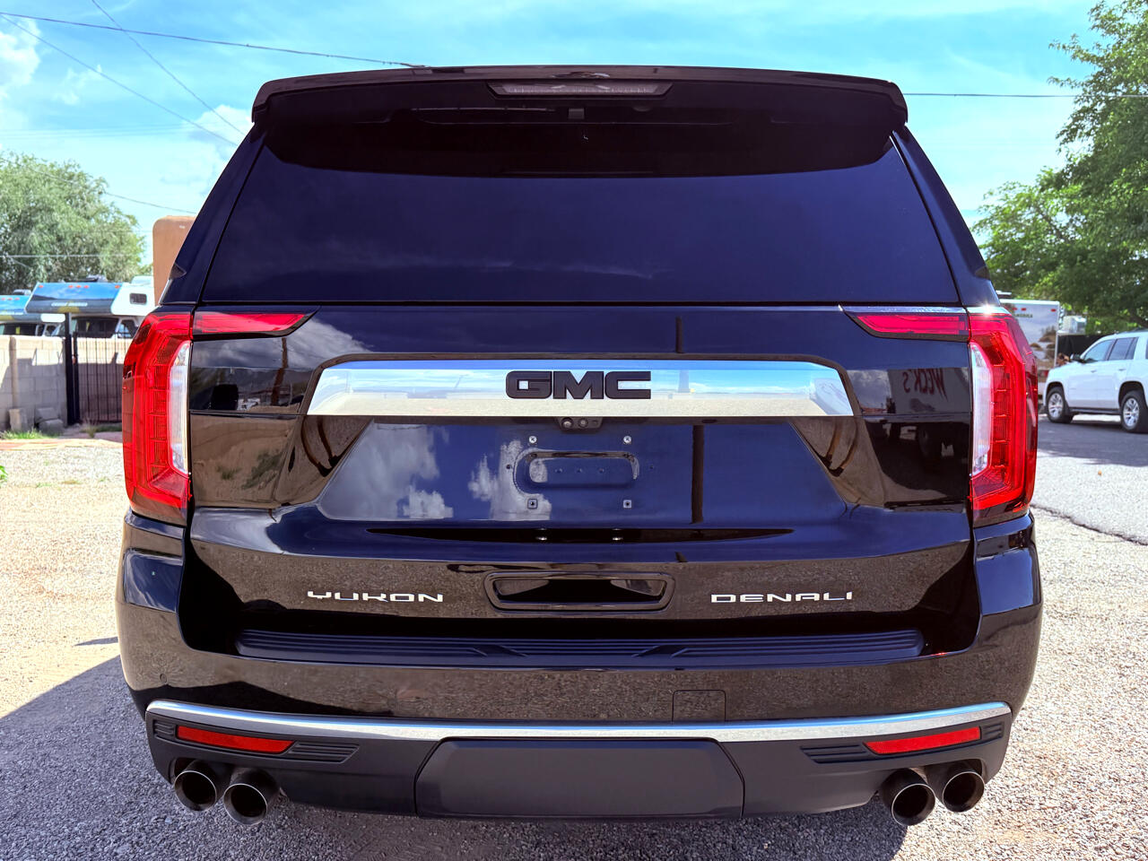 Used 2021 GMC Yukon Denali AWD - Fully Loaded, Super Clean in Albuquerque, NM This super clean 2021 GMC Yukon Denali AWD delivers full-size luxury, power, and versatility in one of the most refined SUVs on the road. Fully loaded with premium features, it comes equipped with a 6.2L V8 engine, advanced all-wheel drive, and a smooth-shifting 10-speed transmission for confident performance in any condition. Inside, the Denali-exclusive interior offers hand-stitched leather, real wood accents, and a large 10.2'' touchscreen with built-in navigation and a heads-up display. You'll also enjoy premium comfort features like a panoramic sunroof, heated and ventilated seats, and a quiet, spacious cabin with seating for up to nine. Magnetic Ride Control and the available Air Ride Adaptive Suspension ensure a smooth, composed ride, while advanced safety tech-including HD Surround Vision and rear pedestrian alert-adds peace of mind. Visit E&B Auto Sales at 11100 Central Ave SE, Albuquerque, NM 87123 to take this fully optioned Yukon Denali for a test drive. Call 505-267-6471 today. Flexible financing and trade-ins welcome - all credit types accepted!